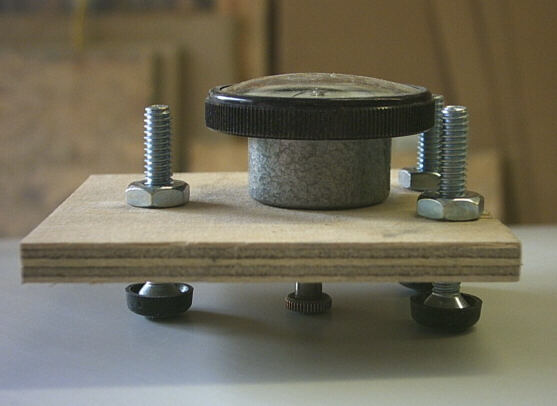 A closeup of my improvised wave guage. The dial is from a general-purpose indicating kit, and the chassis is a chunk of 1/4" plywood.