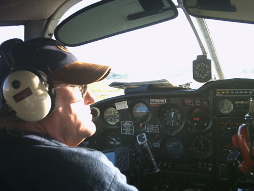 3:22 PM: Stop at Roger's place, get charts and headsets and other aeronautical parephernalia.