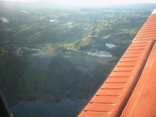 4:40 PM: Depart Hayward airport for Columbia (Oscar 22) with Roger in the left seat and Alia in the right. In the back seat I fiddle with the GPS to find the coordinates for Columbia, even though it's pretty much a straight shot across the valley. When the course line comes up, we're right on it. Alia hums to herself in the intercom.