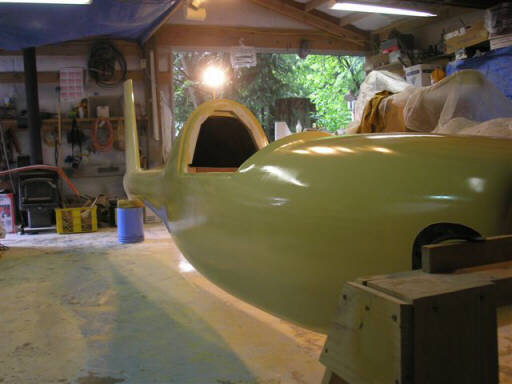 Sprayed with a gloss coat, but not yet sanded smooth.