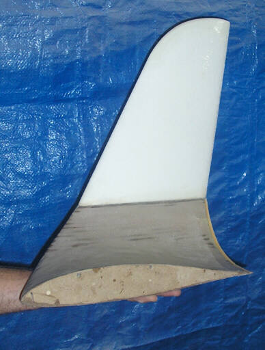 Brad continued working on the winglets, taping the blade onto the transition with lightweight cloth, and taping the hand-sanded leading edge of the fin tip area.