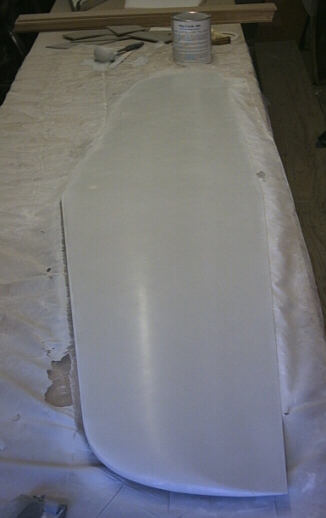 The stabilizer plug top surface after applying about 700 grams of Poly-Lux. I don't know what the volume was, but it was about enough for three fills of my lttle 8-ounce trim gun. The reason I know it was 700 grams was that I was using my new electronic scale to catalyze and thin the paint. I knew that if I wanted consistent results I'd need consistent measures, so I bought a 1200 gram scale that's good down to 0.1 gram. I also look forward to using the scale to mix epoxies like EA9430. I have been using the Schreder Stick method to mix that stuff, but I think that this scale will make it easier to set up for.