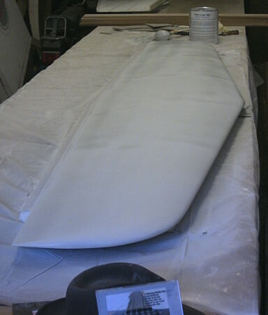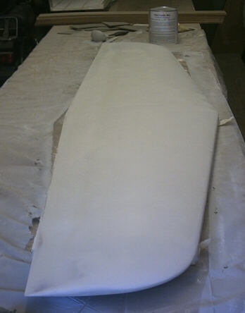 Last weekend on I sprayed Poly-Lux sanding primer onto the horizontal stabilizer plug, and then sanded most of it off. On Saturday I got a coat onto the bottom surface, and on Sunday I came back and sanded out the bottom of the plug, flipped it, and then sprayed the top surface.