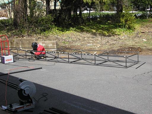 For ADF V we hope to make another two or (hopefully) three wing molds. In ADF IV we discovered how devilishly hard it is to fit in all the tasks it takes to make wing molds. Things I thought would be an easy afternoon's task, like welding up the steel wing mold support from the prefabricated trusses, were in fact two full days of hot grimy work.