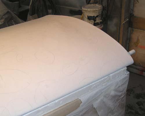 The next five photos show that things are starting to clean up real nice after the initial hits of spray-bondo. Note the pencil marked areas for later pinhole-filling and other attention.