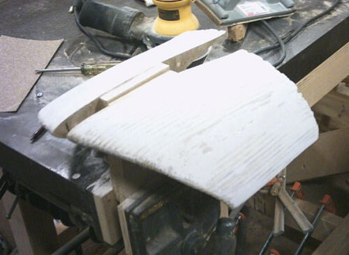 ...And sanded most of the Bondo off of the winglet transitions, leaving only what was in the trenches between the slices as these next two photos show.