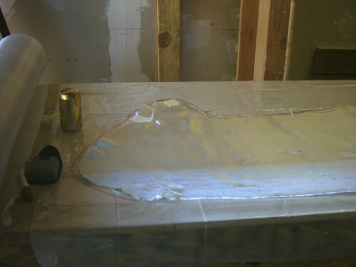 I should be back in the shop on 26 through 30 December 2004. The next order of business is to finish the templates and ply-cutting, and then cut the vacuum-bagging materials. Oh - I also need to finish cutting the joggle flange molds for the vacuum tape, and to make air-tight screw attachments for the flanges.Afterwards, we wax the molds, shoot the gelcoat, and then start laying up. At least, that's the plan from here. Disruption is always an option!