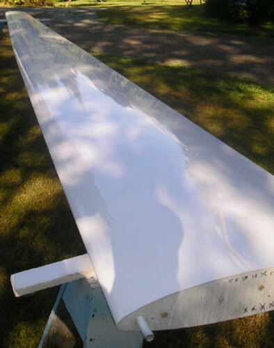 Yeah, we're still at work on it. Brad Hill has finished plastering, smoothing, contouring, sanding, and polishing both of the HP-24 wing plugs, and as the following photos show the results are nothing short of magnificient!