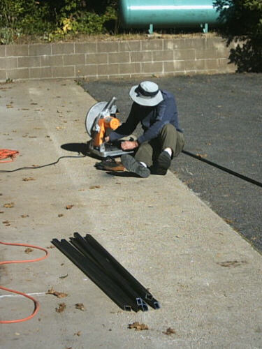 The weekend of 29 and 30 October 2005, we had Doug Gray up to help with the work on the wing mold trusses. On Friday, Doug and I loaded up the truss jig and also the two semi-finished trusses that I'd done at Steve's garage and drove up to the house. Of course, we also loaded up the nice little Hobart MIG welder and also my cheap grotty Harbor Fright chop saw.