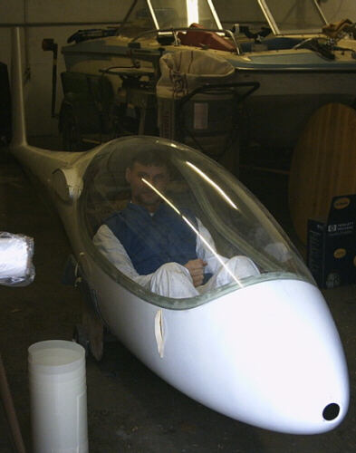 Also, we never did get around to starting on the left-side fuselage half. By the time we finished the right half, we had used up all of the vacuum bag material that I'd bought, we were too beat to wax and gelcoat the left-side mold, and we knew that we'd need to re-cut the right-side veil cloth to make it drape better. But, hey; half is definitely better than none.