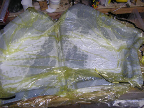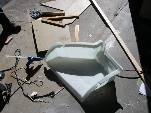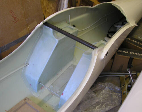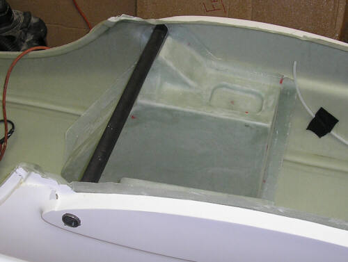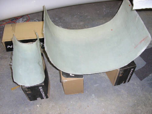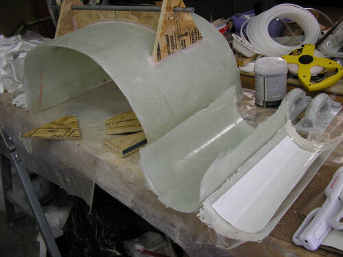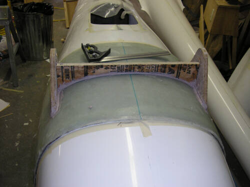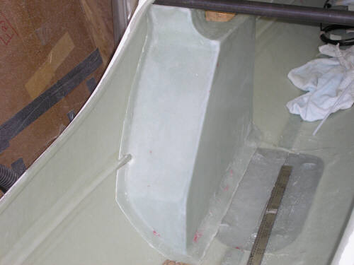Over the weekend I trimmed the wheel well boxes and did some fitting, although I didn't start bonding them in. For this aircraft at least, I want to bond the gear well boxes in while the fuselage is in the molds. That's so that it will fit back in with the boxes in place, and also so that I can develop a set of steel weldments that can be used to locate and install the wheel well bulkheads while the fuselage is on the half-shell.