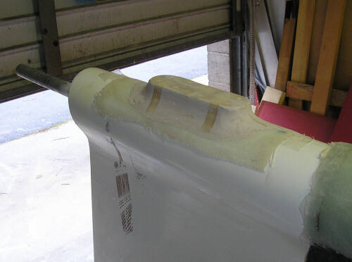 Last week Brigitta made a set of the nose bulkheads, and also a set of the wheel well boxes. She also made the saddles for a fuselage dolly and a tail dolly, and got a good start on the plug for the pneumatic tailwheel exterior fairing.