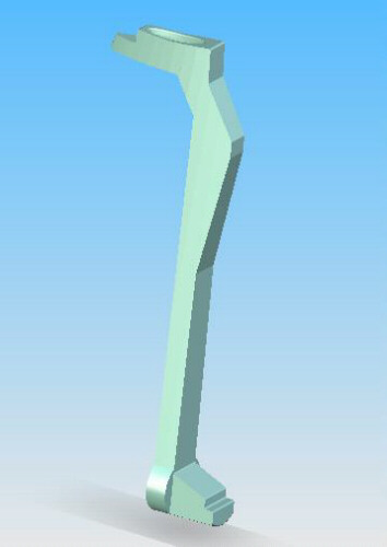 Here's a view of the vertical fin spar as Brad modeled it from my sketches. You can see that it's a pretty complicated part and does quite a lot of stuff. It serves as fin spar shear web (the carbon spar caps bond between it and the fin skin), upper and lower rudder hinge support, fin tip rib, and horizontal stab mounting platform. Brad models this stuff up in SolidWorks and Rhino, and then passes them off to me using the SolidWorks eDrawings feature. In eDrawings, I can rotate the model, measure parts of it, make parts disappear or go transparent, and add comments. And if we had six or seven digit $ to throw at this thing, we could take those models to the CNC shop and have them do the finished plugs or molds. But we're not, so mostly we use these models to guide us as we make the plugs by hand using Masonite and Bondo. If it's stupid but it works, it ain't stupid!